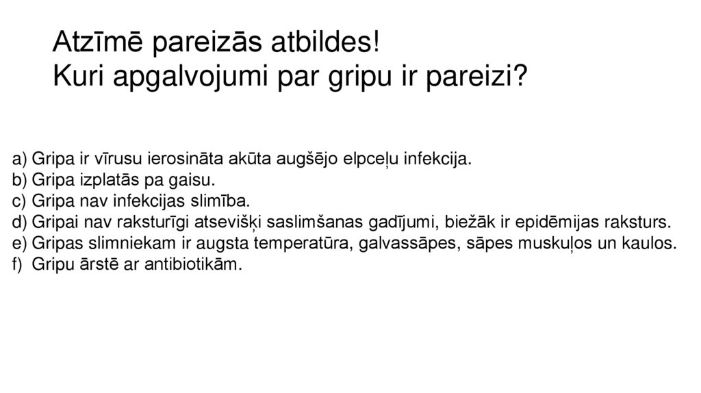 27. Atzīmē pareizās atbildes! Kuri apgalvojumi par gripu ir pareizi?