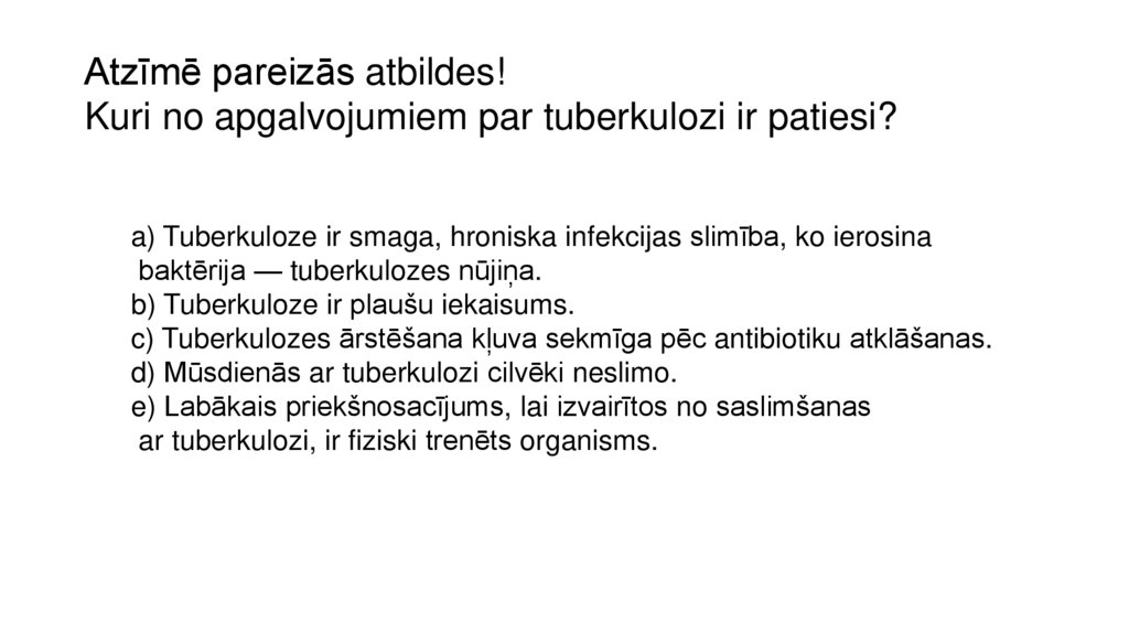 31. Atzīmē pareizās atbildes! Kuri no apgalvojumiem par tuberkulozi ir patiesi?