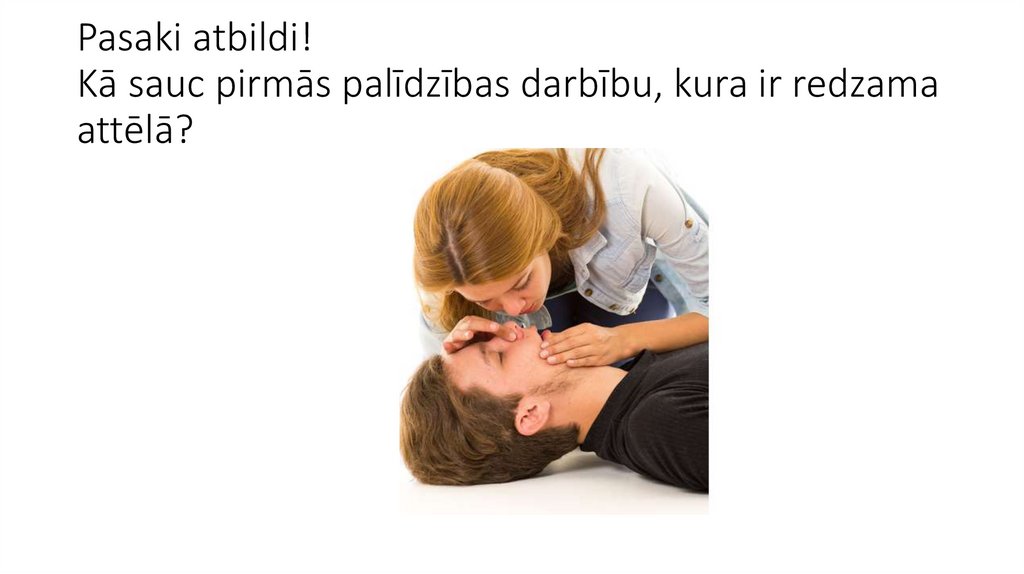 34. Pasaki atbildi! Kā sauc pirmās palīdzības darbību, kura ir redzama attēlā?
