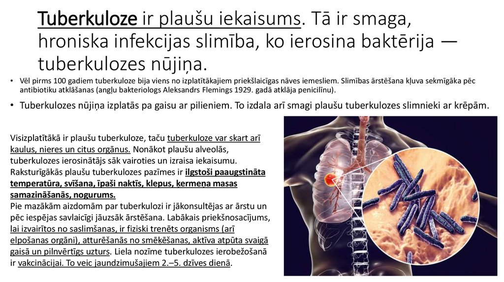 Tuberkuloze ir plaušu iekaisums. Tā ir smaga,hroniska infekcijas slimība, ko ierosina baktērija —