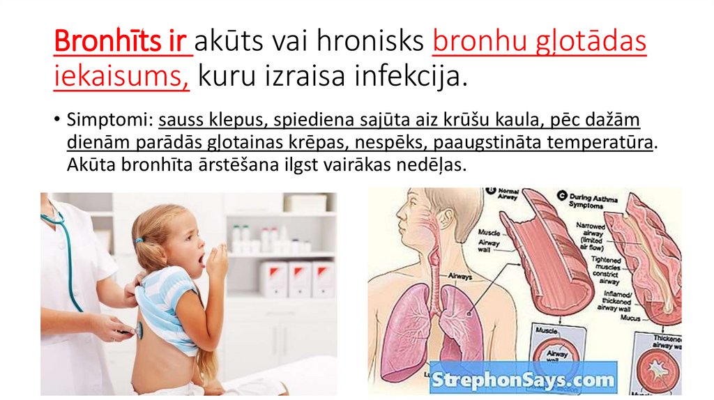 9. Bronhīts ir akūts vai hronisks bronhu gļotādas iekaisums, kuru izraisa infekcija.