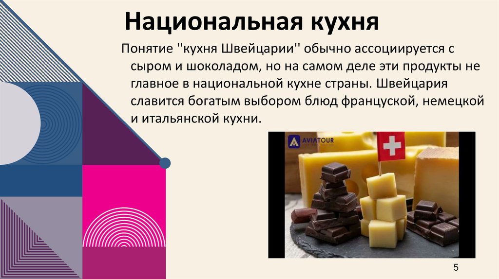 Национальная кухняПонятие ''кухня Швейцарии'' обычно ассоциируется с