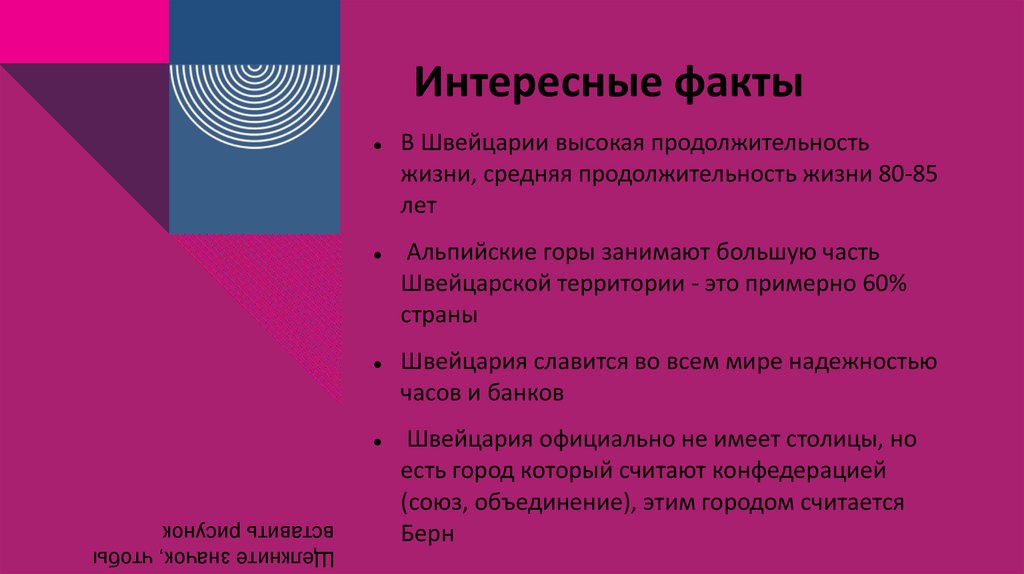 Интересные фактыВ Швейцарии высокая продолжительность