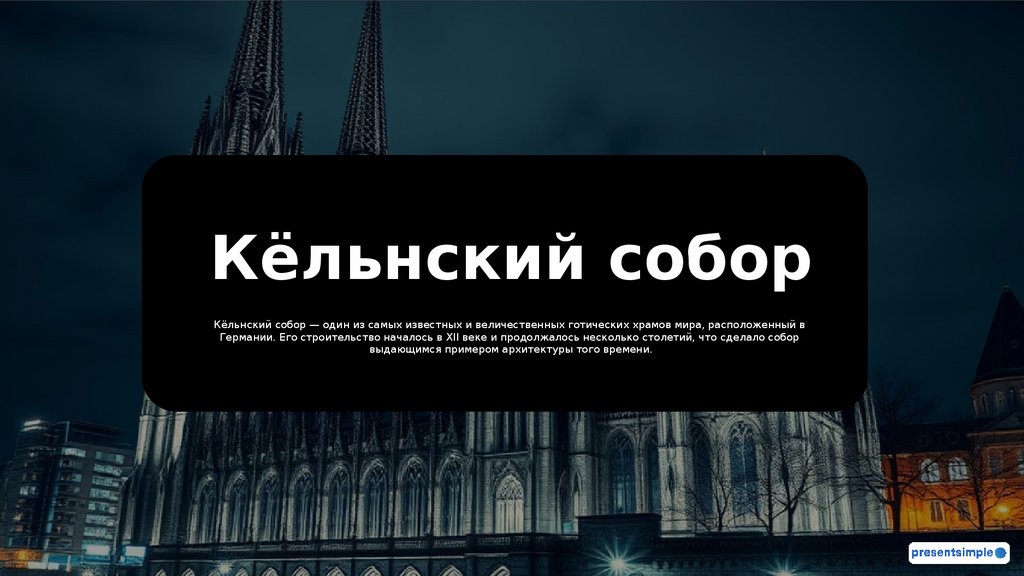 Кёльнский соборКёльнский собор — один из самых известных и величественных готических храмов мира, расположенный в