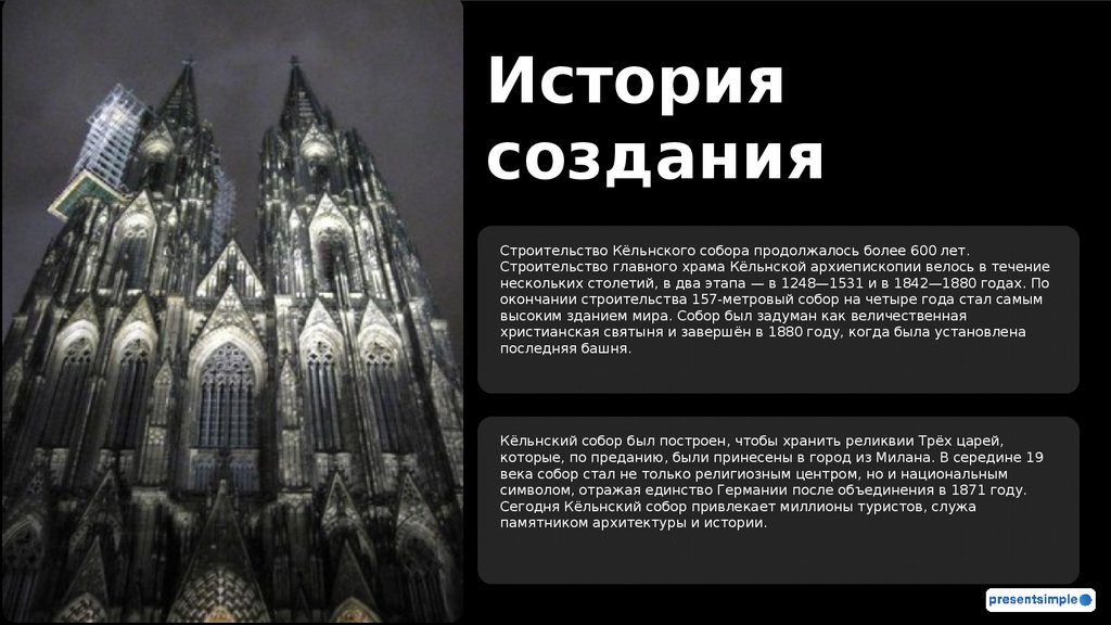 Строительство Кёльнского собора продолжалось более 600 лет.