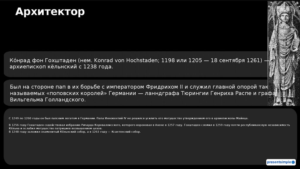 АрхитекторКо́нрад фон Гохштаден (нем. Konrad von Hochstaden; 1198 или 1205 — 18 сентября 1261) —