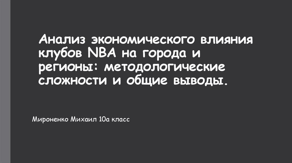 1. Анализ экономического влияния клубов NBA на города и регионы: методологические сложности и общие выводы.