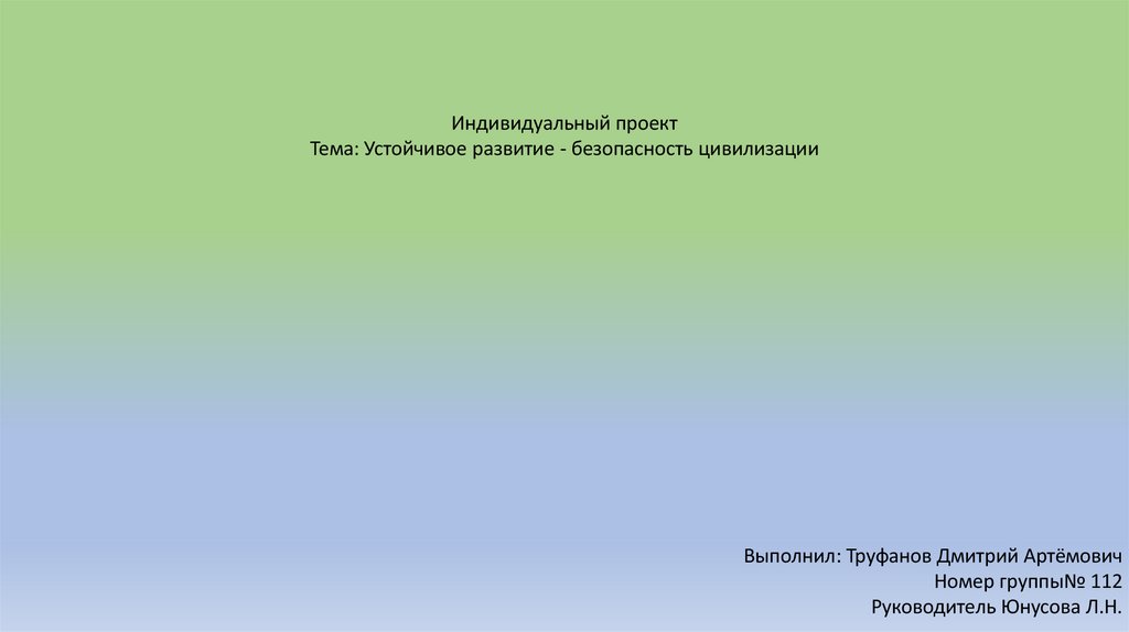 Индивидуальный проектТема: Устойчивое развитие - безопасность цивилизации