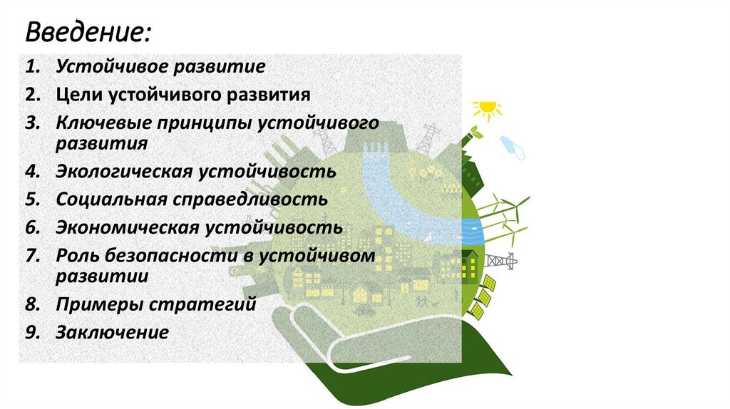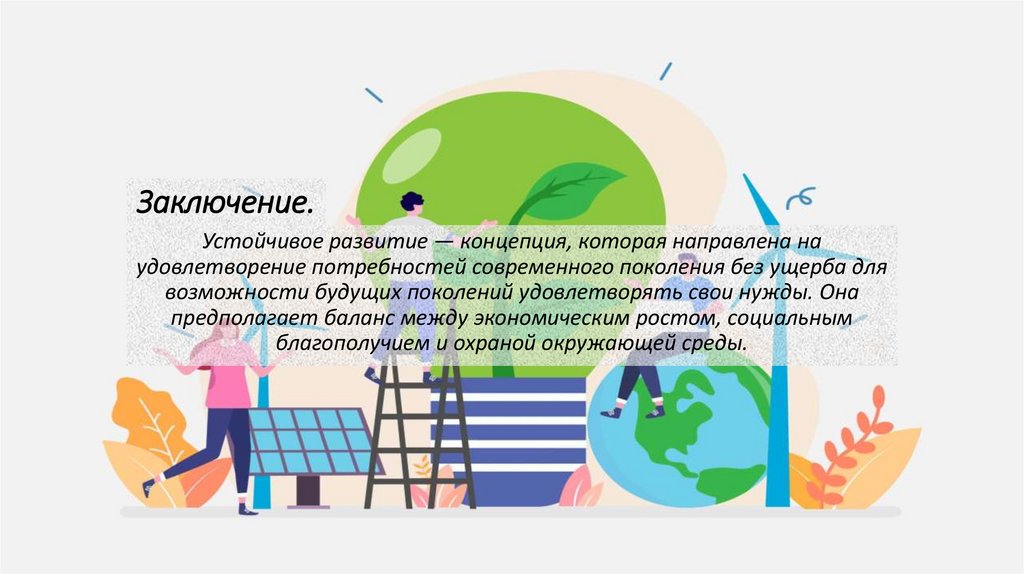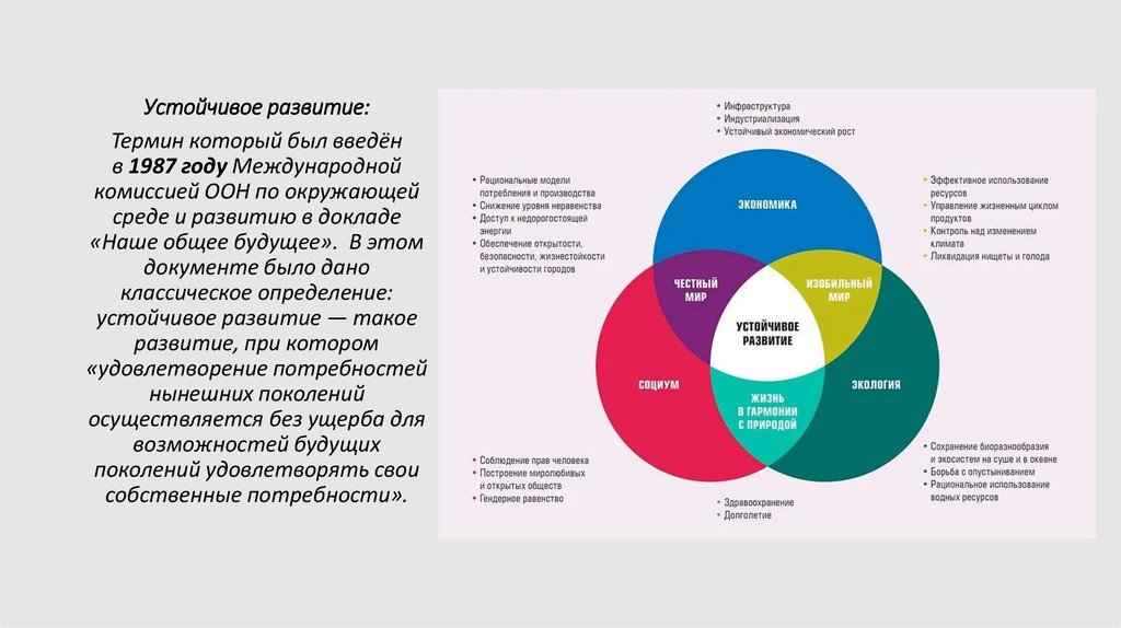Устойчивое развитие — концепция, которая направлена наудовлетворение потребностей современного поколения без ущерба для