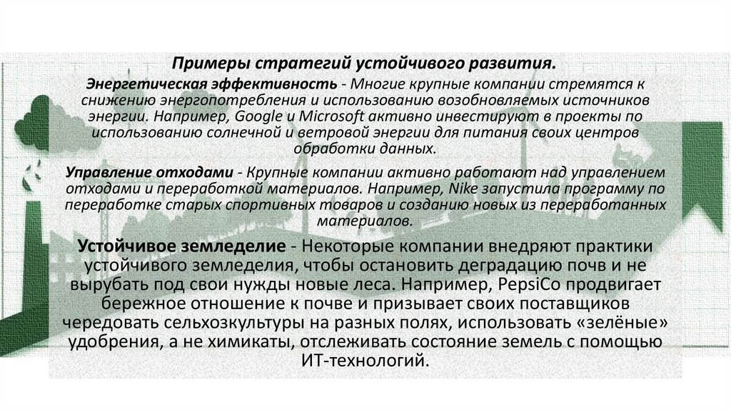 Устойчивое земледелие - Некоторые компании внедряют практики