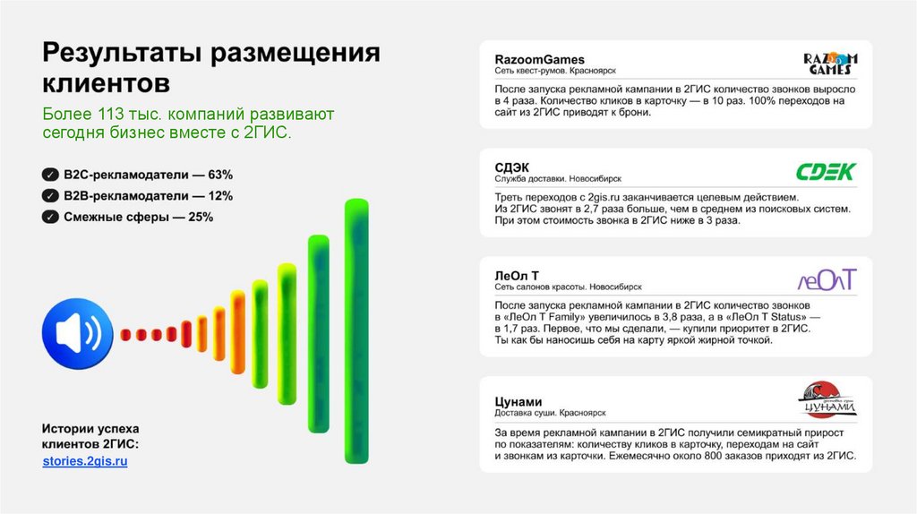 Более 113 тыс. компаний развиваютсегодня бизнес вместе с 2ГИС.