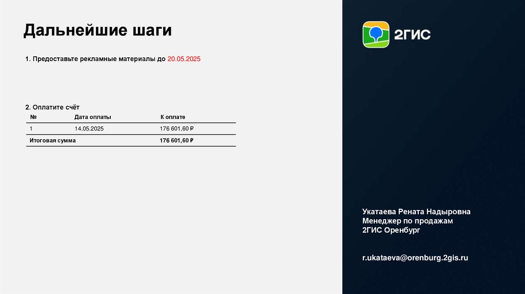 Дальнейшие шаги1. Предоставьте рекламные материалы до 20.05.2025