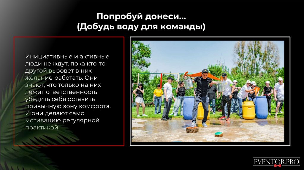 Попробуй донеси…(Добудь воду для команды)