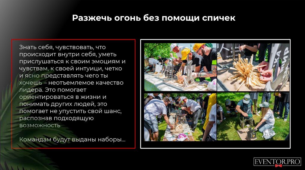 Разжечь огонь без помощи спичекЗнать себя, чувствовать, что