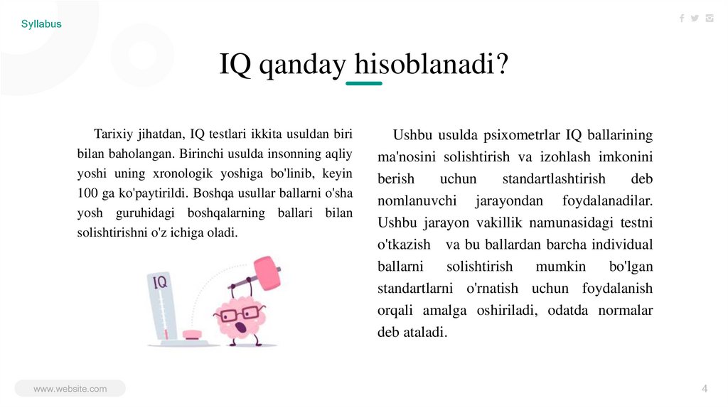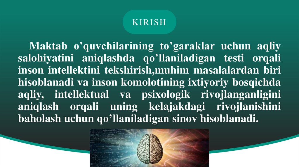 bilan baholangan. Birinchi usulda insonning aqliy