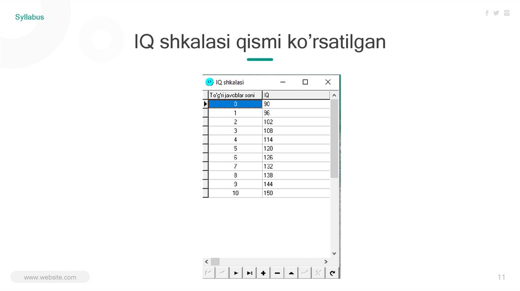 SyllabusIQ shkalasi qismi ko’rsatilgan