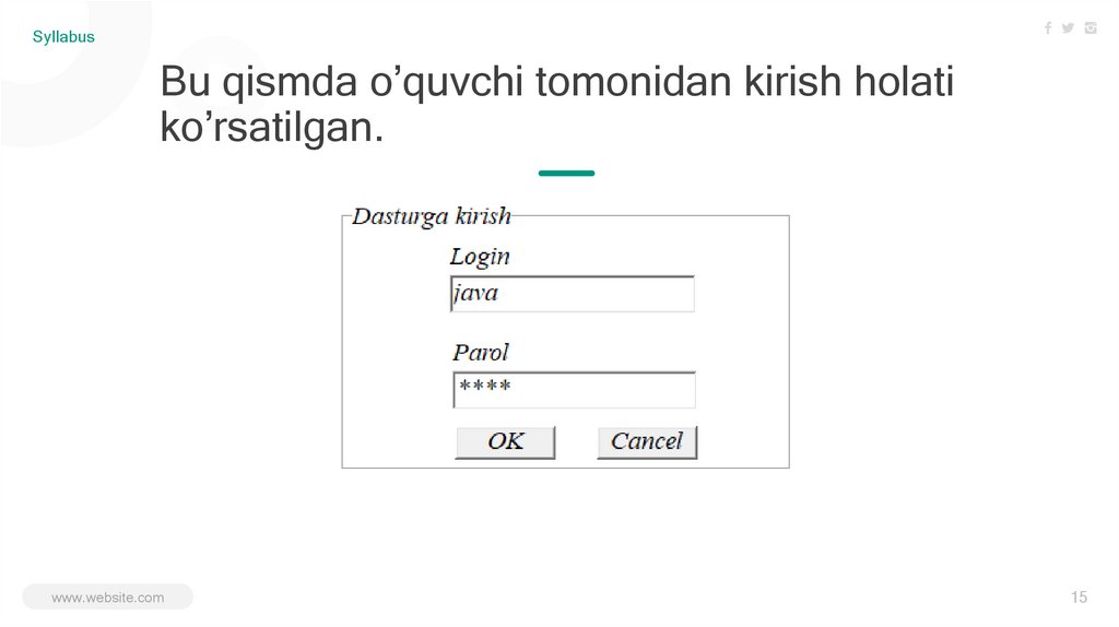 SyllabusBu qismda o’quvchi tomonidan kirish holati