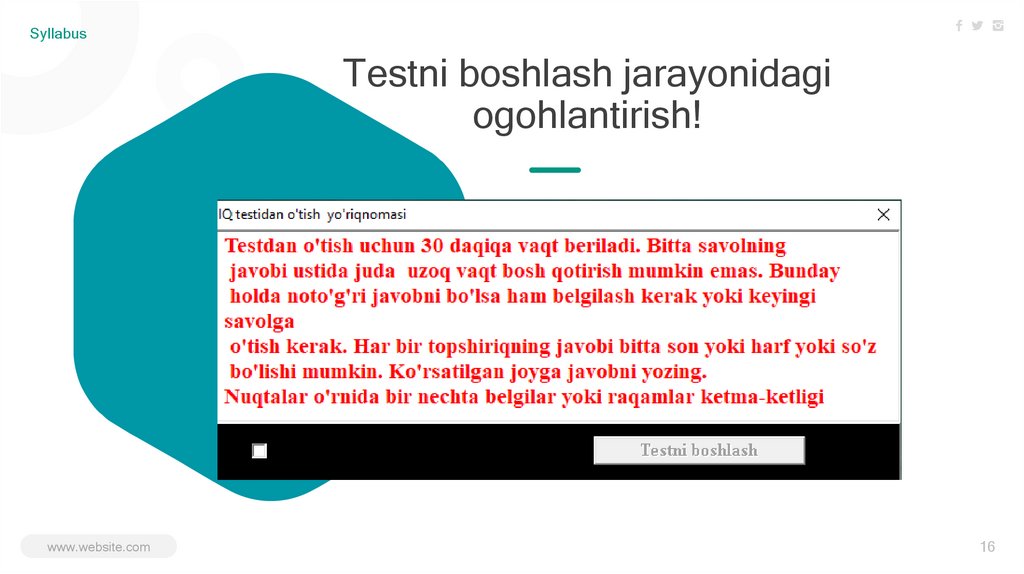 SyllabusTestni boshlash jarayonidagi