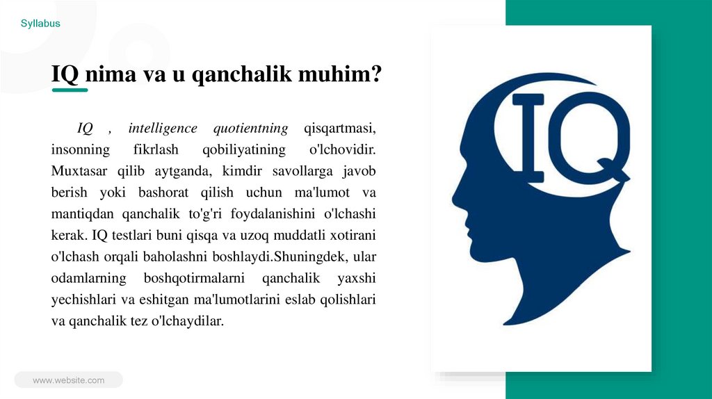 IQ testi va intellektni tekshirish muhim