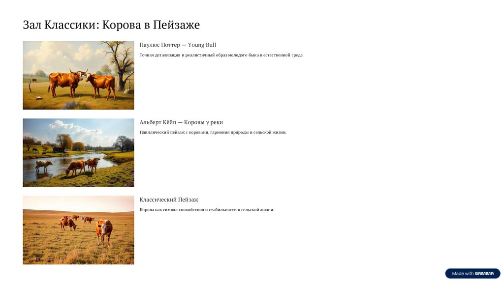Различные художники передают коров в естественном свете и атмосфере природы.