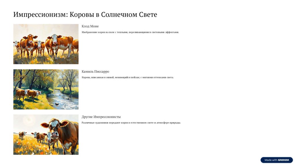 Импрессионизм: Коровы в Солнечном СветеКлод Моне