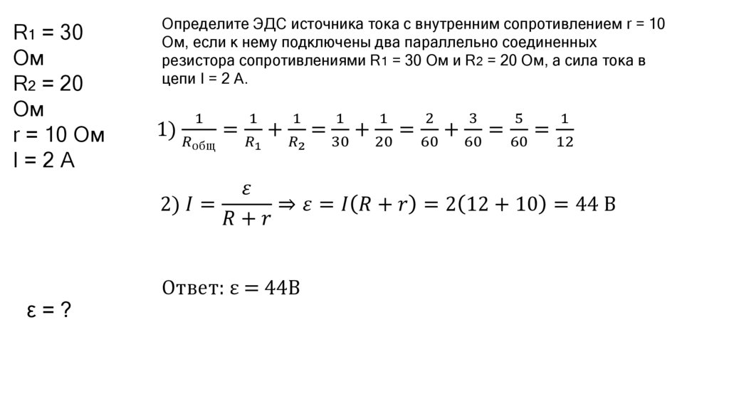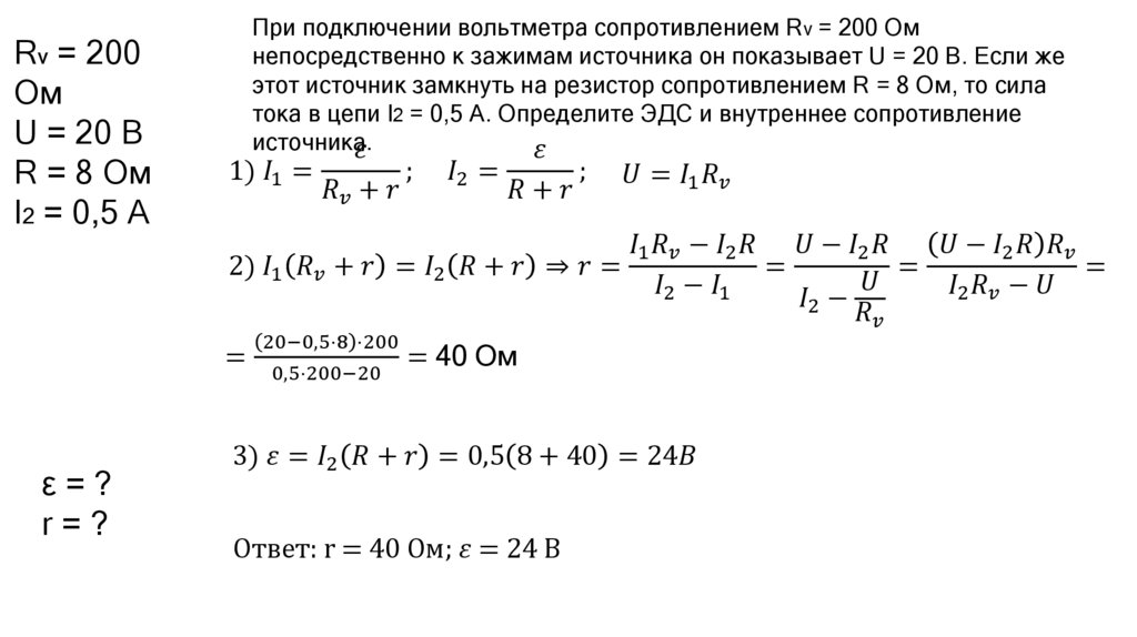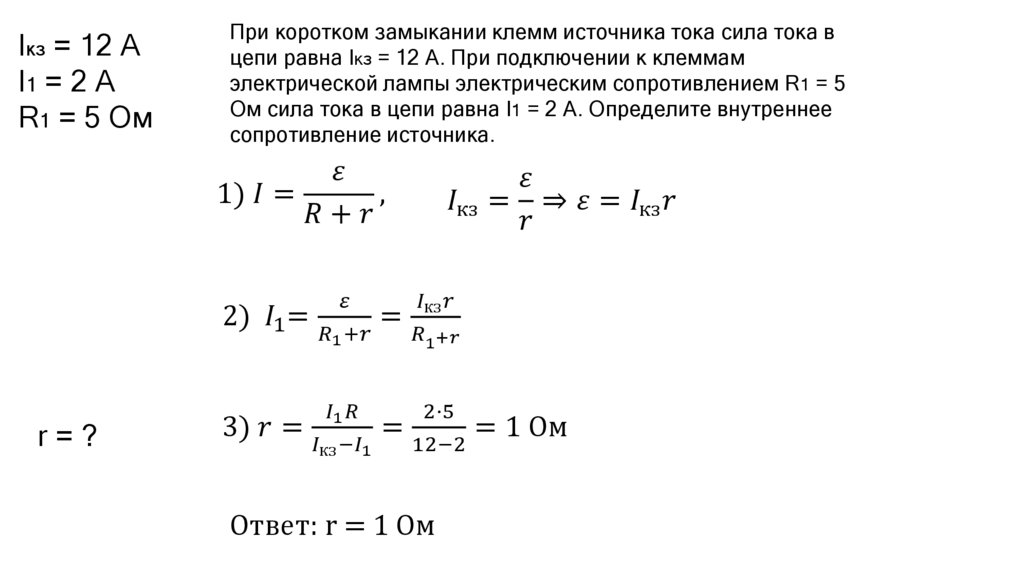 Решение задач на закон Ома для полной цепи
