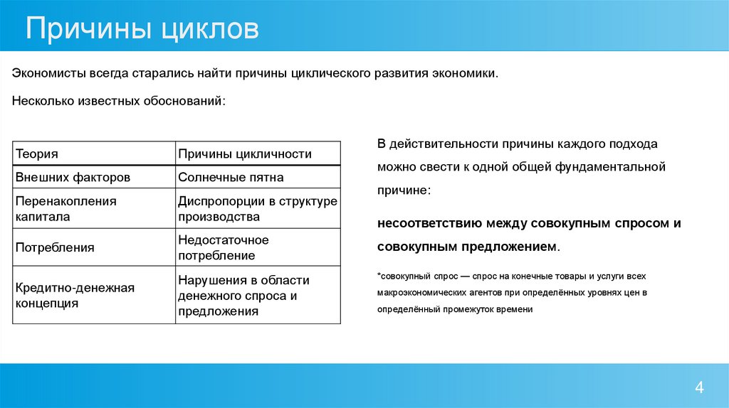 Причины цикловЭкономисты всегда старались найти причины циклического развития экономики.