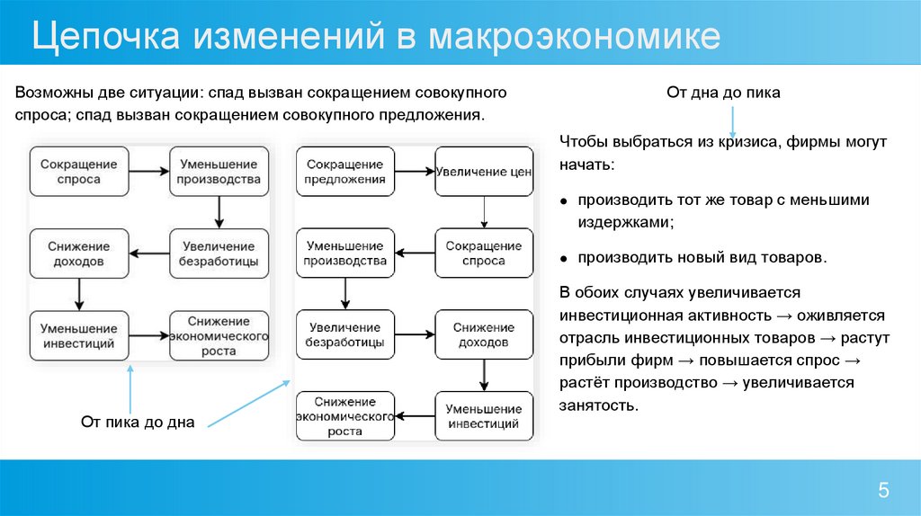 Цепочка изменений в макроэкономикеВозможны две ситуации: спад вызван сокращением совокупного