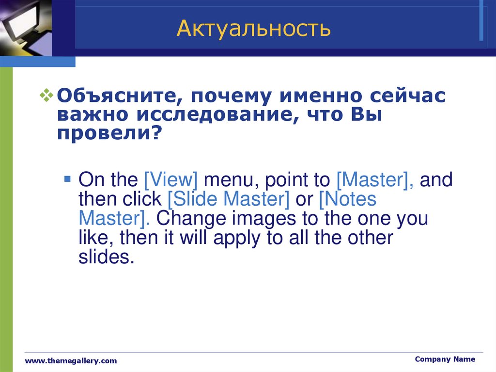 Цели и задачи (формулируем кратко, можно наотдельном слайде цель – на сл. – задачи)