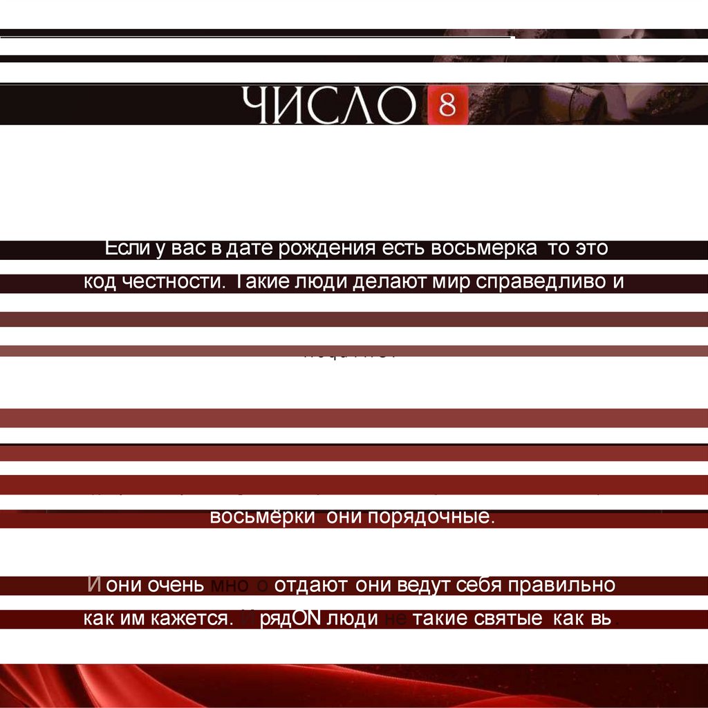 Если у вас в дате рождения есть восьмерка то этокод честности. Такие люди делают мир справедливо и