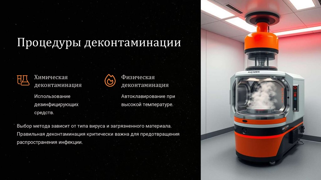 Выбор метода зависит от типа вируса и загрязненного материала.