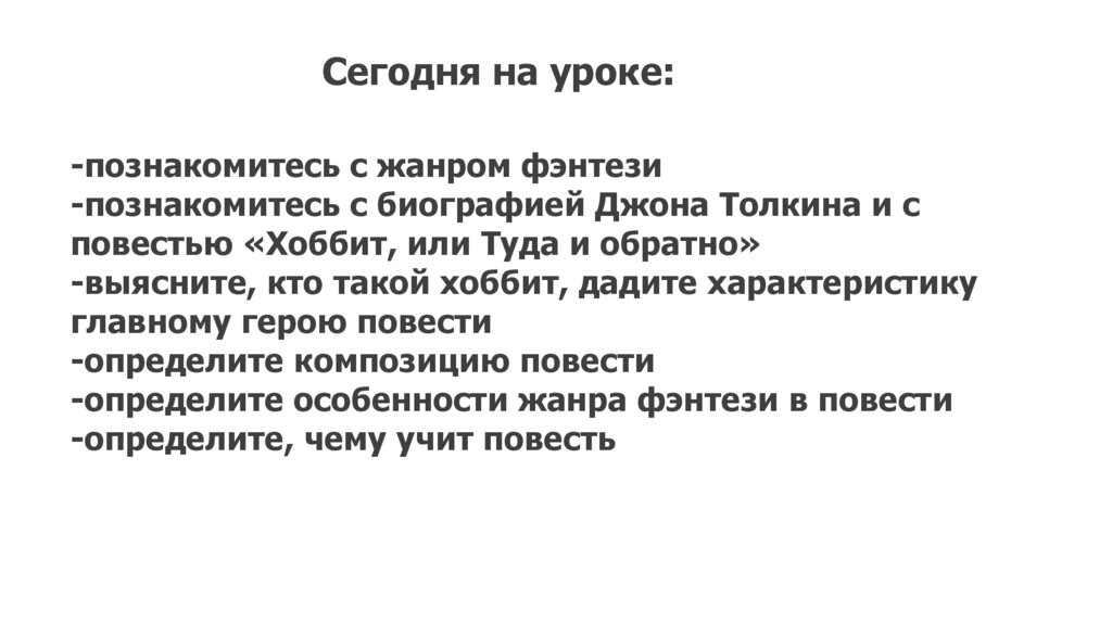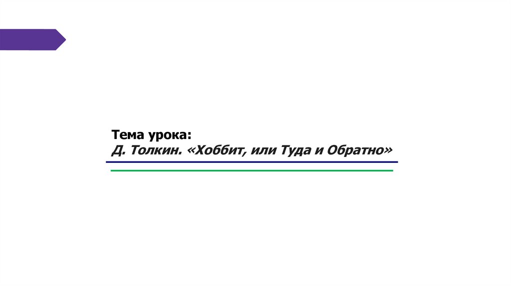 Тема урока:Д. Толкин. «Хоббит, или Туда и Обратно»
