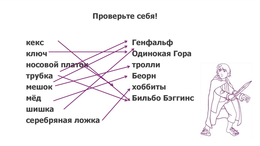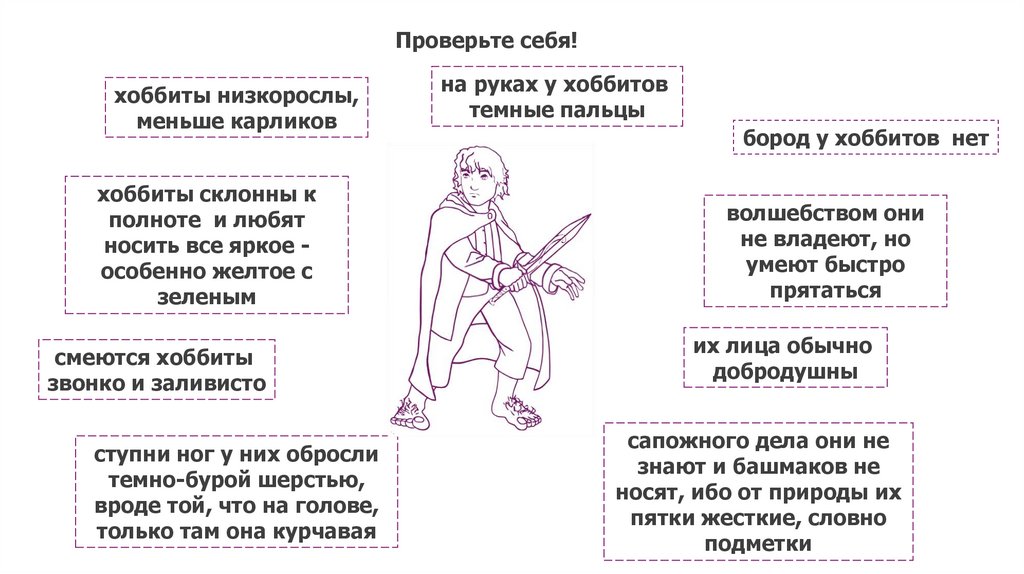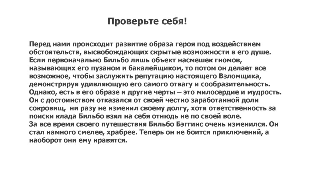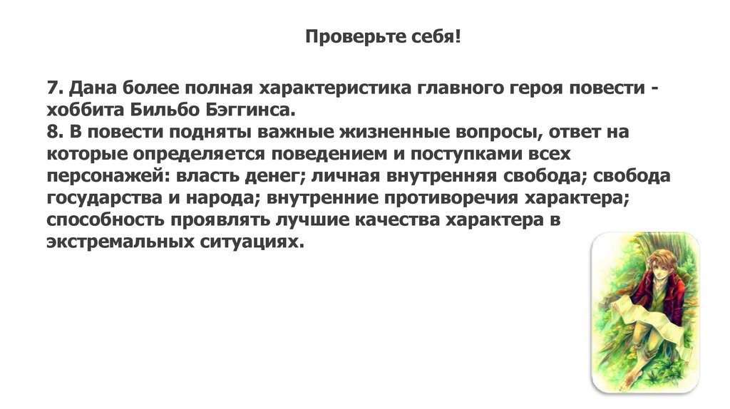Проверьте себя!7. Дана более полная характеристика главного героя повести хоббита Бильбо Бэггинса.