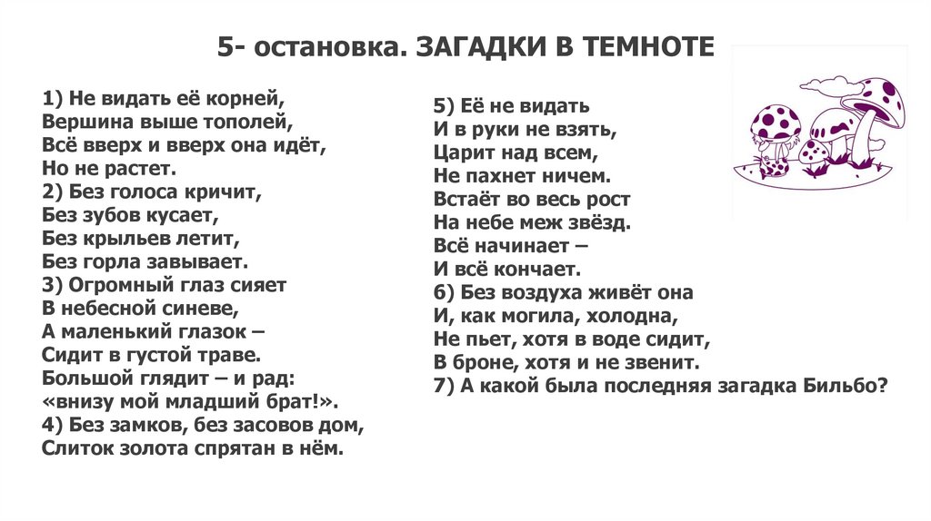 7) А какой была последняя загадка Бильбо?