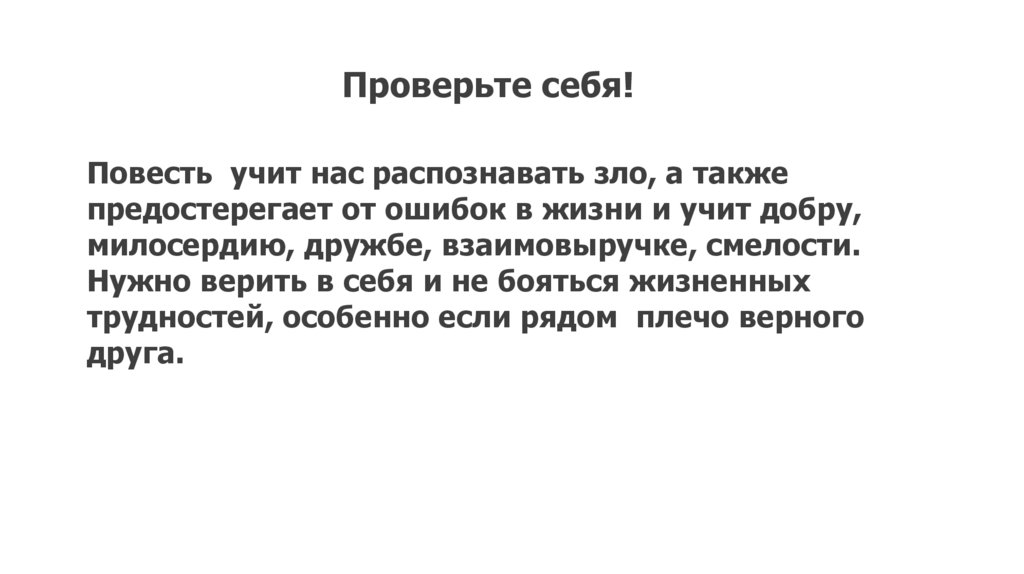 Проверьте себя!Повесть учит нас распознавать зло, а также