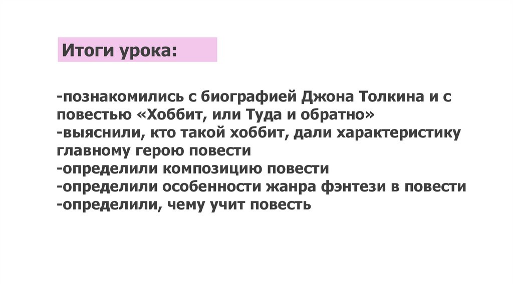 Итоги урока:-познакомились с биографией Джона Толкина и с