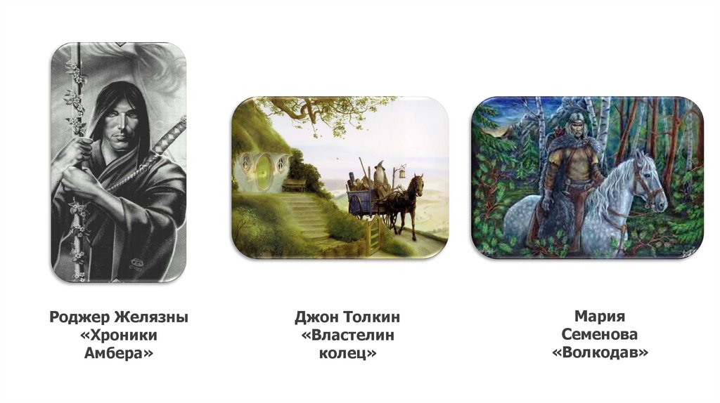 также фантастические персонажи, созданные автором: хоббиты и