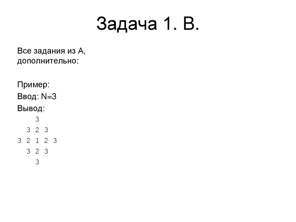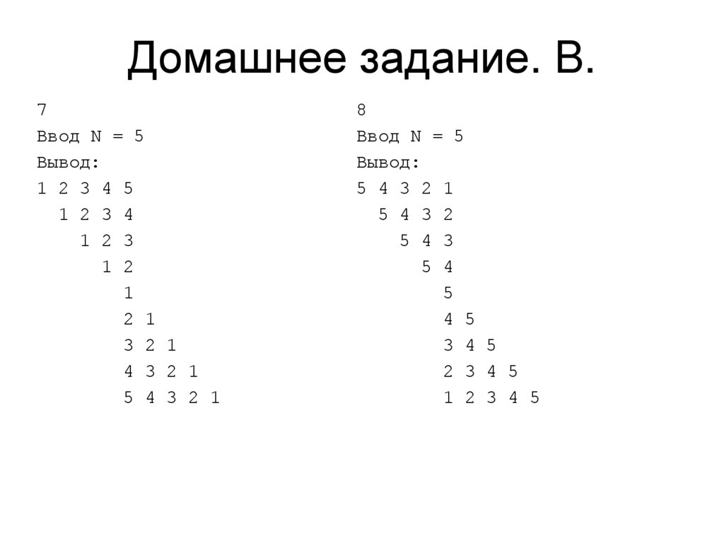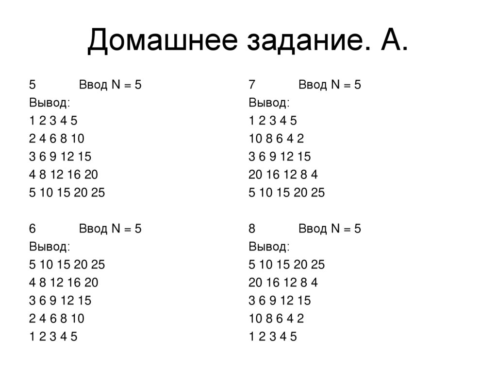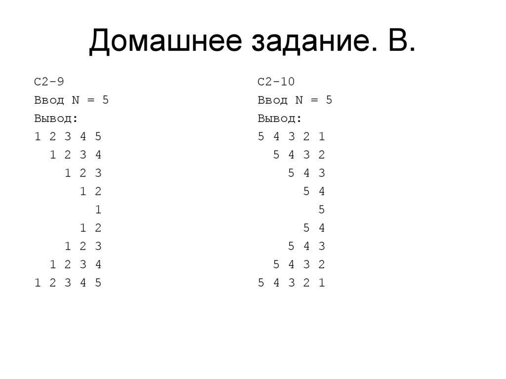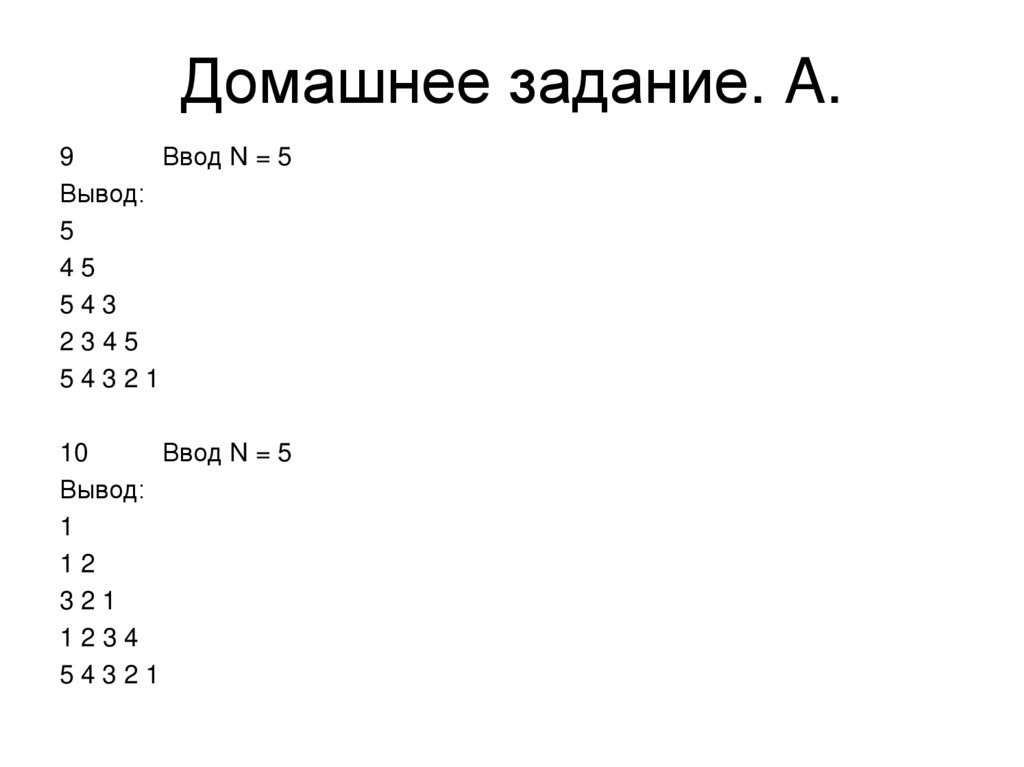 Выполнить реализацию вывода соответствующих заданиюцифровых узоров. Реализовать 1, 2 задания через циклы While, 3 и