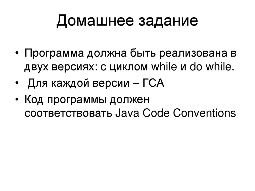 • Программа должна быть реализована вдвух версиях: c циклом while и do while.