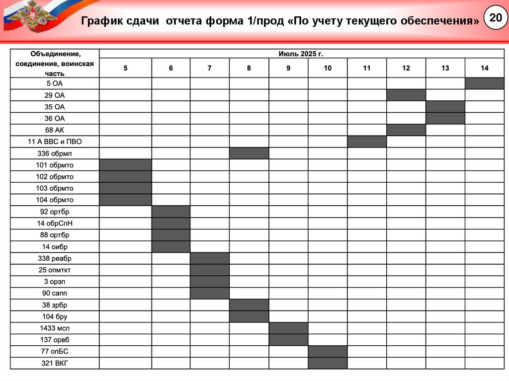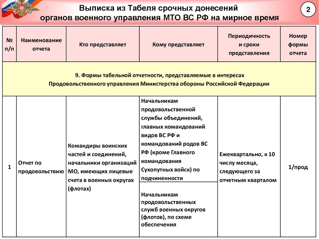 Выписка из Табеля срочных донесенийорганов военного управления МТО ВС РФ на мирное время