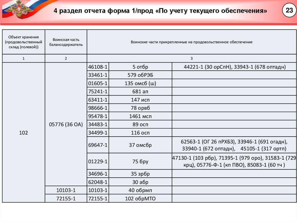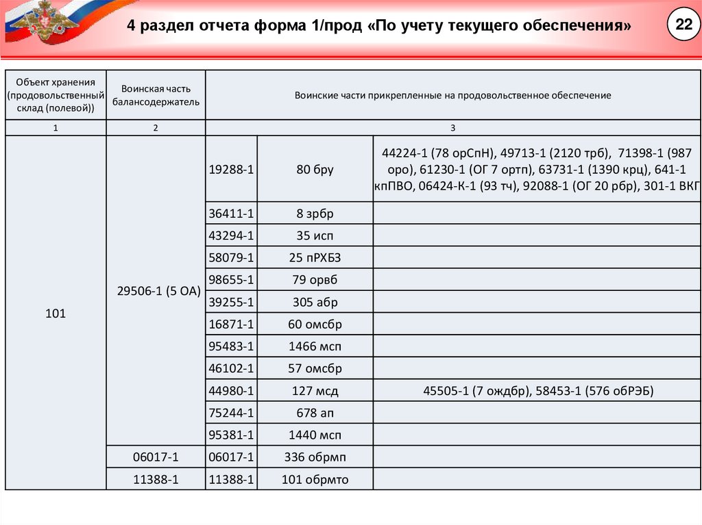 продовольствию МО, имеющих лицевые Сухопутных войск) по