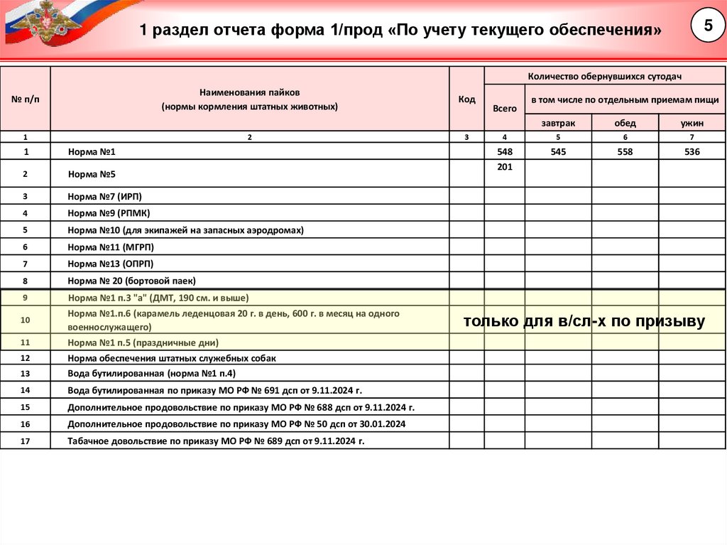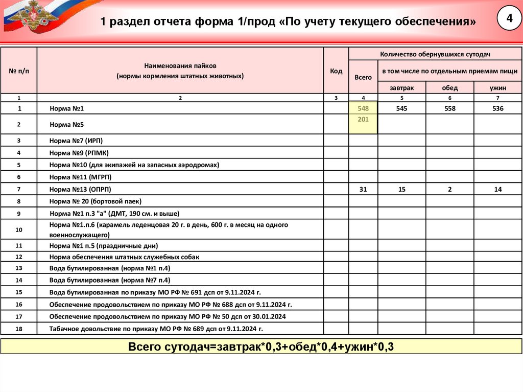 Обеспечение продовольствием по приказу МО РФ № 688 дсп от 9.11.2024 г.