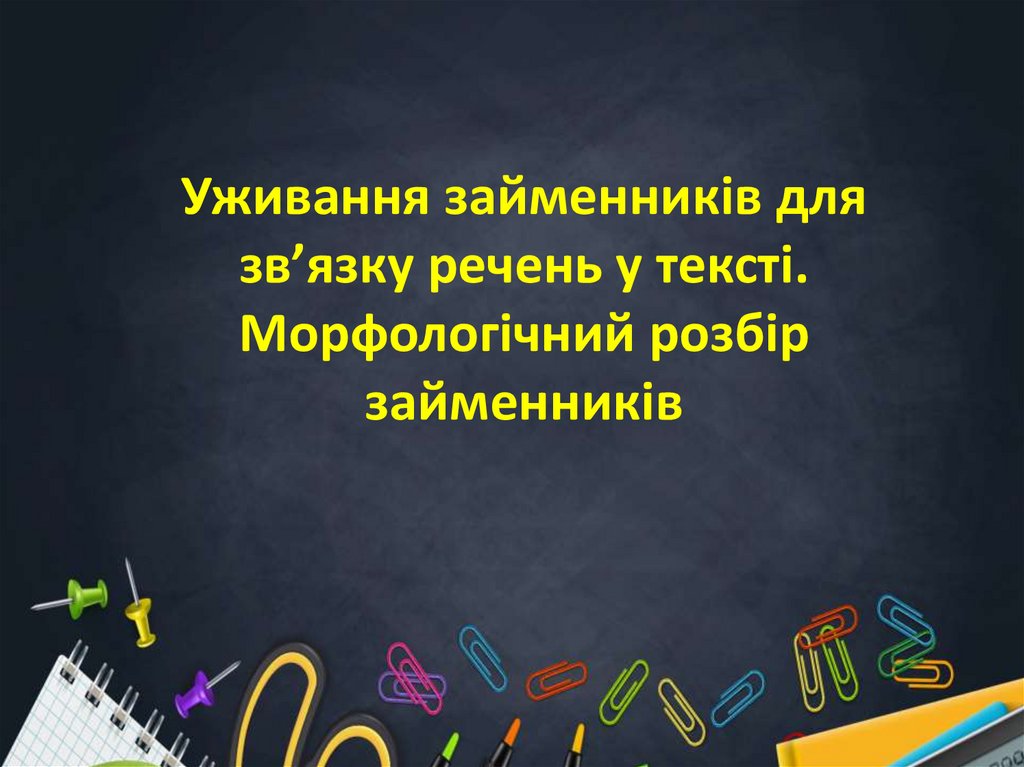 Уживання займенників для зв’язку речень у тексті. Морфологічний розбір займенників (6 клас)