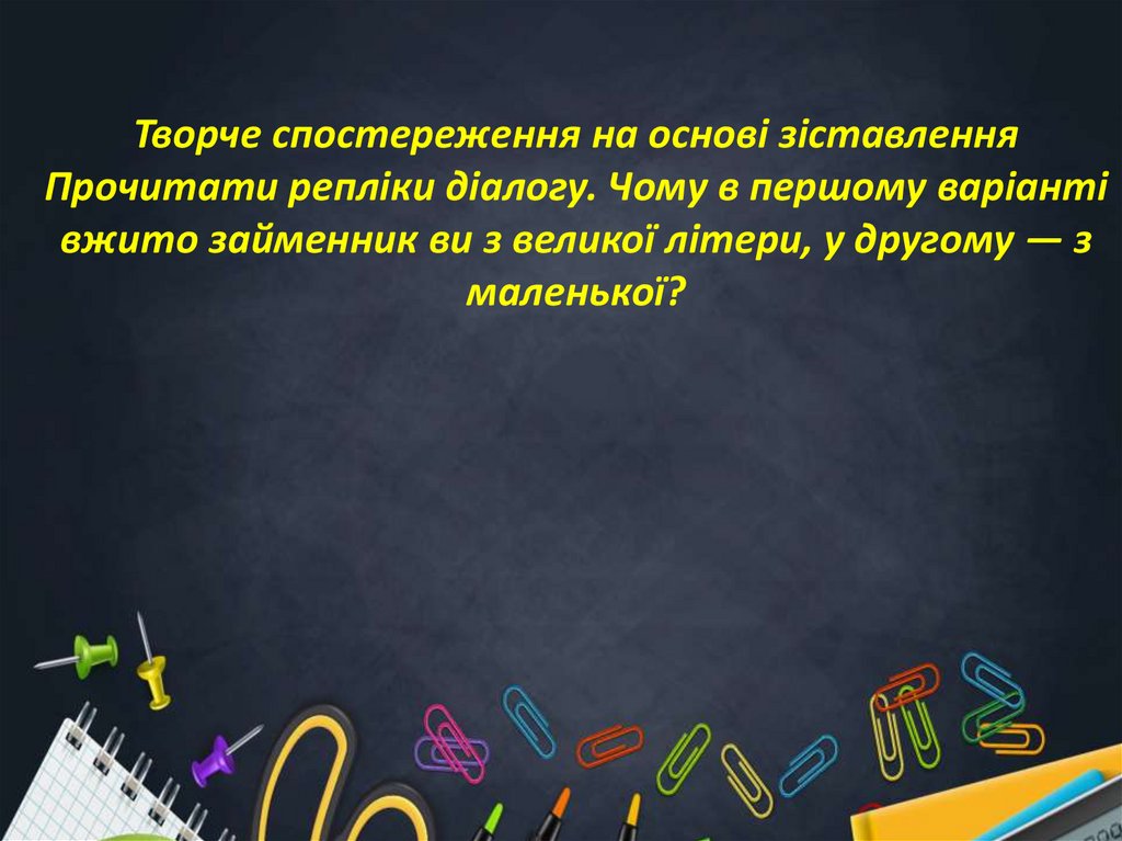 Творче спостереження на основі зіставленняПрочитати репліки діалогу. Чому в першому варіанті