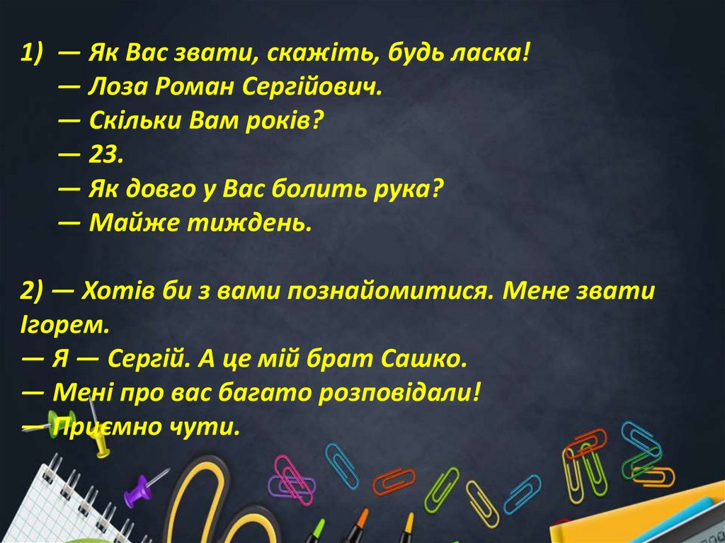 1) — Як Вас звати, скажіть, будь ласка!— Лоза Роман Сергійович.