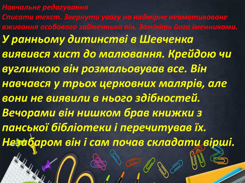 Навчальне редагуванняСписати текст. Звернути увагу на надмірне невмотивоване