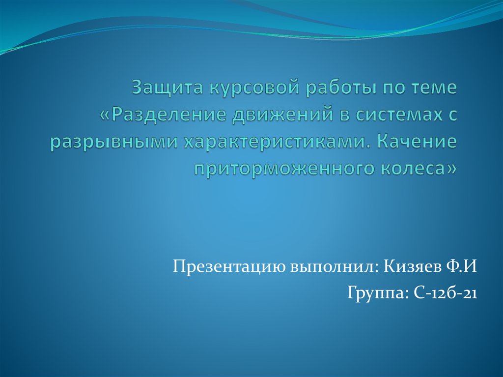 Защита курсовой работы по теме: «Разделение движений в системах с разрывными характеристиками. Качение приторможенного колеса»