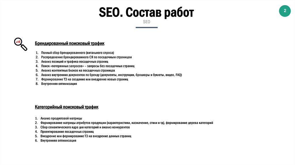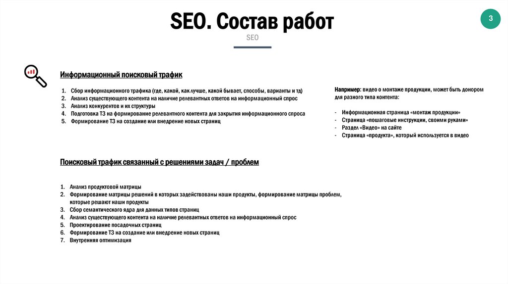 SEO. Состав работSEO информационный раздел