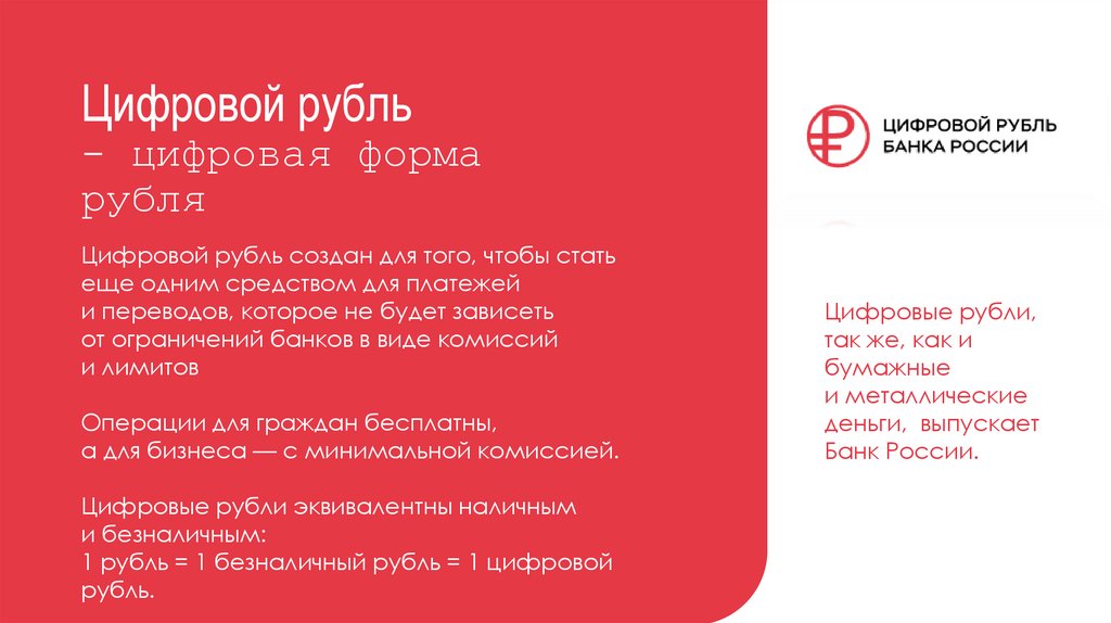 1 рубль = 1 безналичный рубль = 1 цифровой