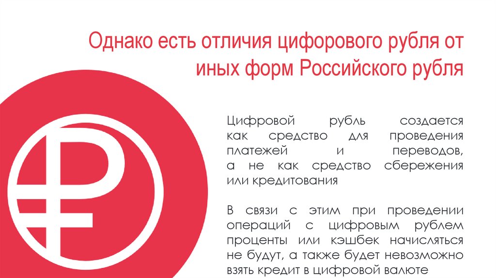 Однако есть отличия цифорового рубля отиных форм Российского рубля